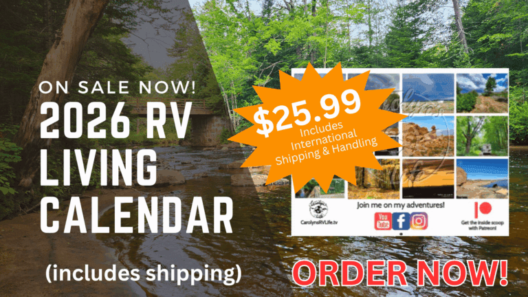 Order between Dec. 1 – Dec. 8, 2025, to reserve your 2026 Carolyn’s RV Living Calendar for just $21.99 (including shipping). The price will increase to $25.99 after Dec. 8, 2025, so order your calendar today! International shipping available to Canada, Mexico, Great Britain, Australia and greater Europe.